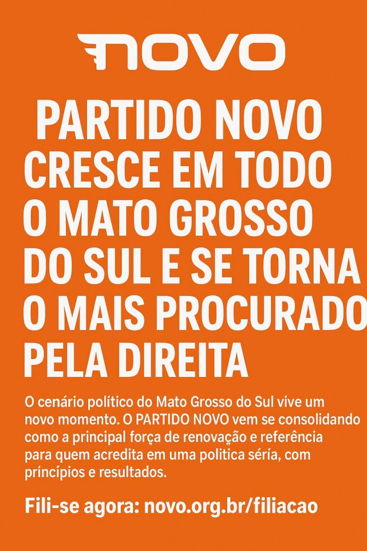 Com o fortalecimento de nomes de peso nacional como o governador Romeu Zema (MG), o deputado federal Marcel Van Hattem (RS), e o senador Girão (CE), o NOVO atrai no Mato Grosso do Sul, o partido cresce dia após dia, recebendo novas adesões e se tornando uma das siglas mais disputadas por lideranças de direita que rejeitam conchavos e buscam representar o cidadão com integridade. Políticos de grande relevância já sinalizam interesse em se filiar ao NOVO na próxima janela eleitoral, reforçando ainda mais o peso do partido no cenário estadual.